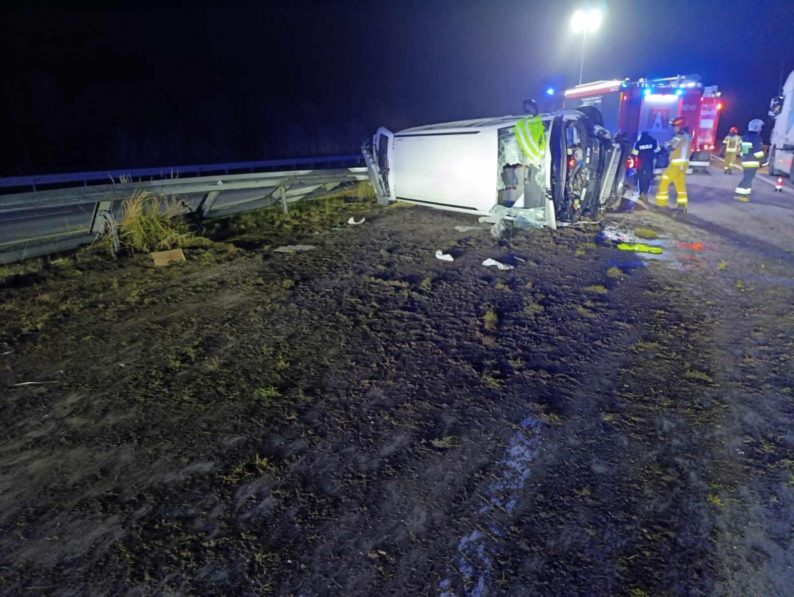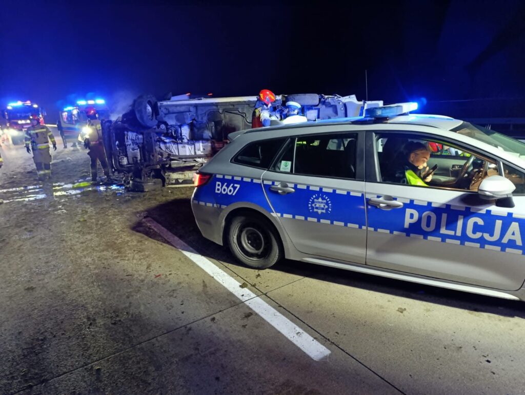 Wczoraj wieczorem na autostradzie A4, na około 6. kilometrze w kierunku Wrocławia, doszło do groźnego wypadku drogowego. Bus, którym podróżowały trzy osoby, z nieustalonych dotąd przyczyn uderzył w barierę energochłonną oddzielającą pasy ruchu. Siła zderzenia była na tyle duża, że pojazd przewrócił się na bok, blokując część jezdni i stwarzając poważne zagrożenie dla innych uczestników ruchu.