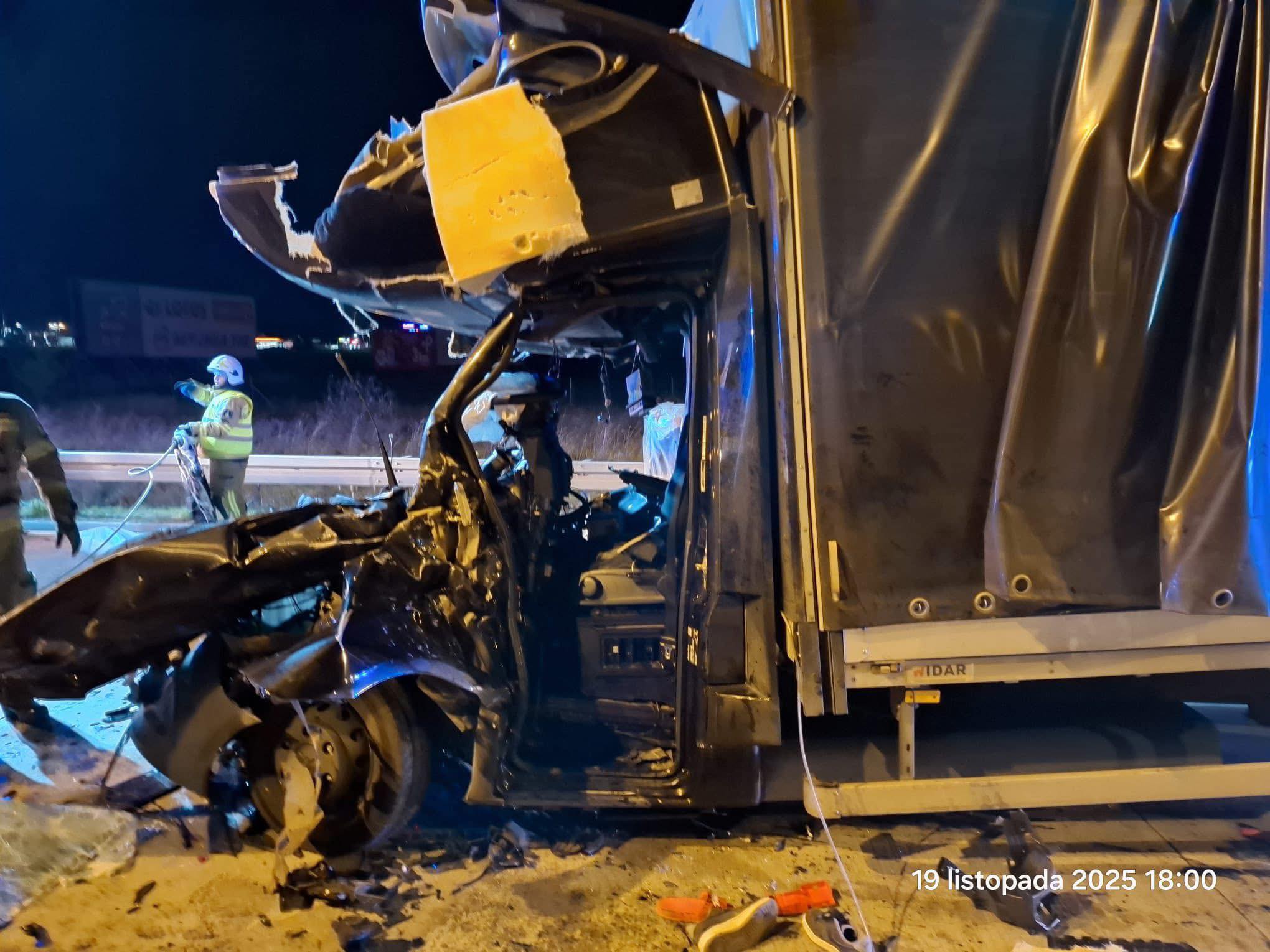 Dziś na około 4. kilometrze autostrady A4 w kierunku granicy, w rejonie zjazdu na Zgorzelec, doszło do poważnego wypadku. Samochód dostawczy uderzył w tył naczepy ciężarówki przewożącej artykuły meblowe. Siła zderzenia była ogromna – przód busa został mocno zniszczony.