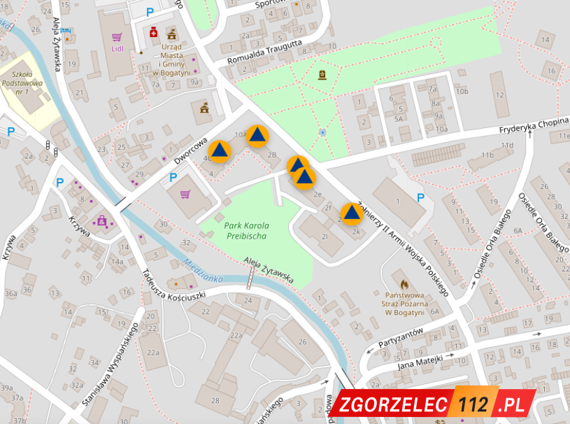 W Bogatyni aplikacja wskazuje następujące miejsca schronienia: