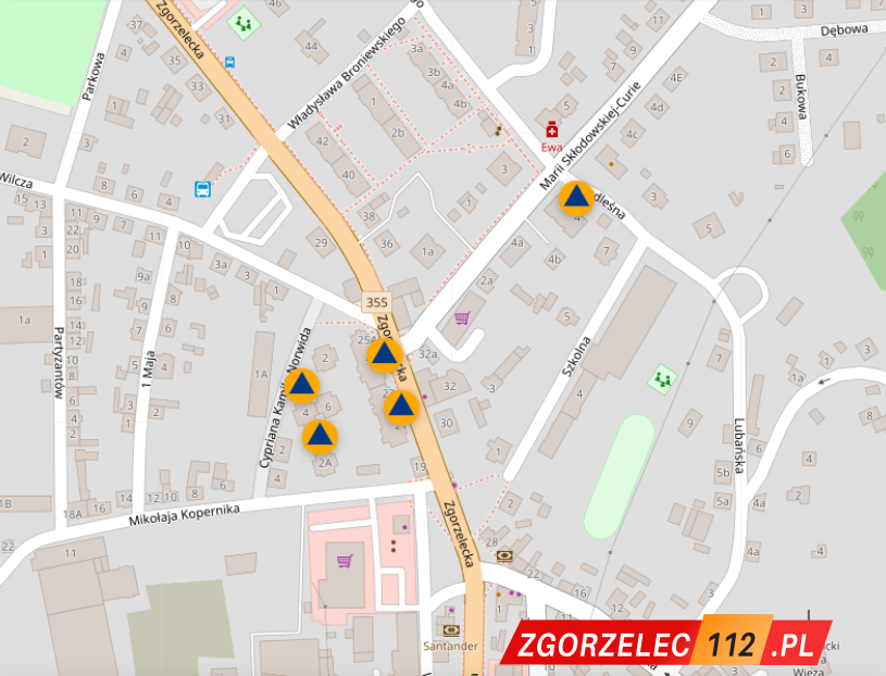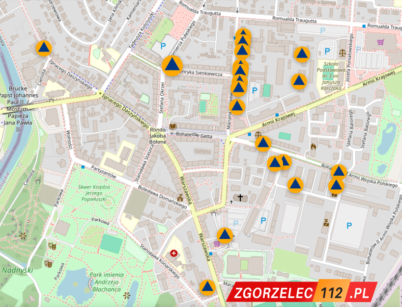 W przypadku Zgorzelca aplikacja wskazuje aż 20 punktów schronienia zlokalizowanych na terenie miasta.