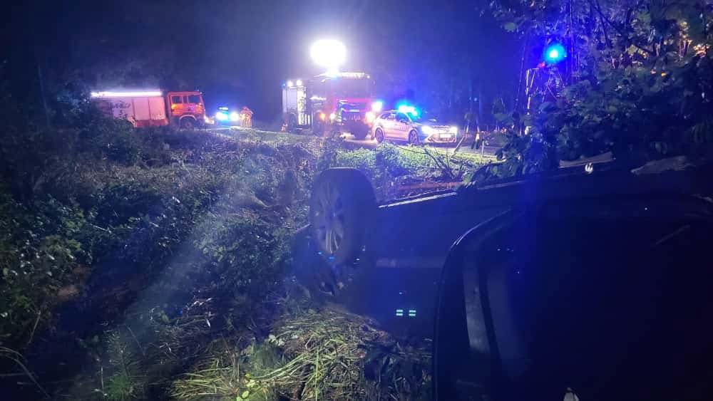Z dotychczasowych informacji wynika, że samochód osobowy, z nieustalonych jeszcze przyczyn, zjechał z jezdni, uderzył w przydrożne drzewa, a następnie dachował. Skala zdarzenia była bardzo poważna, a pojazd został znacznie uszkodzony.